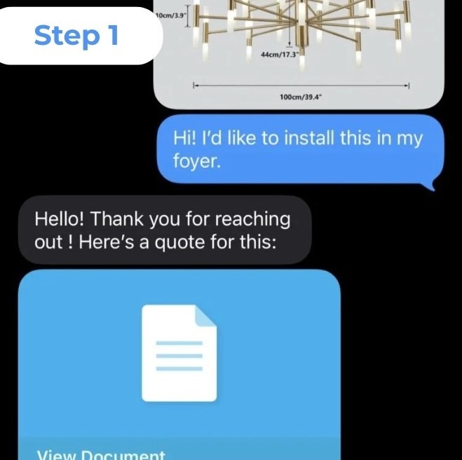 Send us a photo of your chandelier and ceiling, and we’ll give you a clear quote and schedule your installation in minutes.