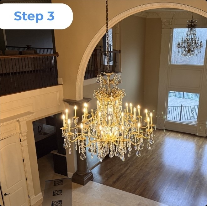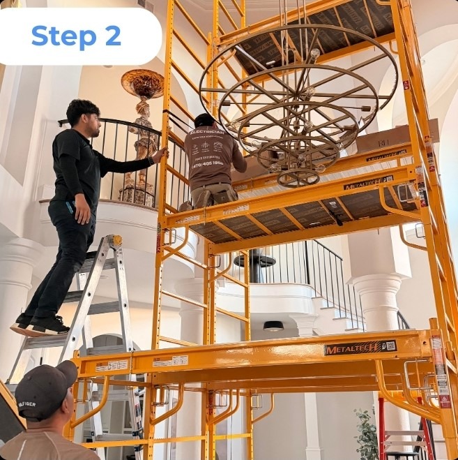 Every chandelier install follows the same careful process so nothing gets skipped and the finished result looks right.