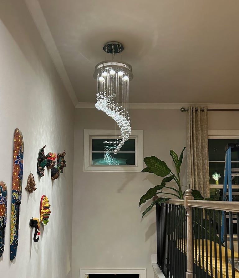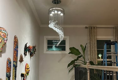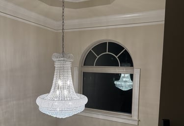 Some chandeliers are too heavy for standard ceiling boxes. We install the proper mounting systems and reinforcement so the fixture is supported by the structure of the home, not just drywall or light-duty hardware..